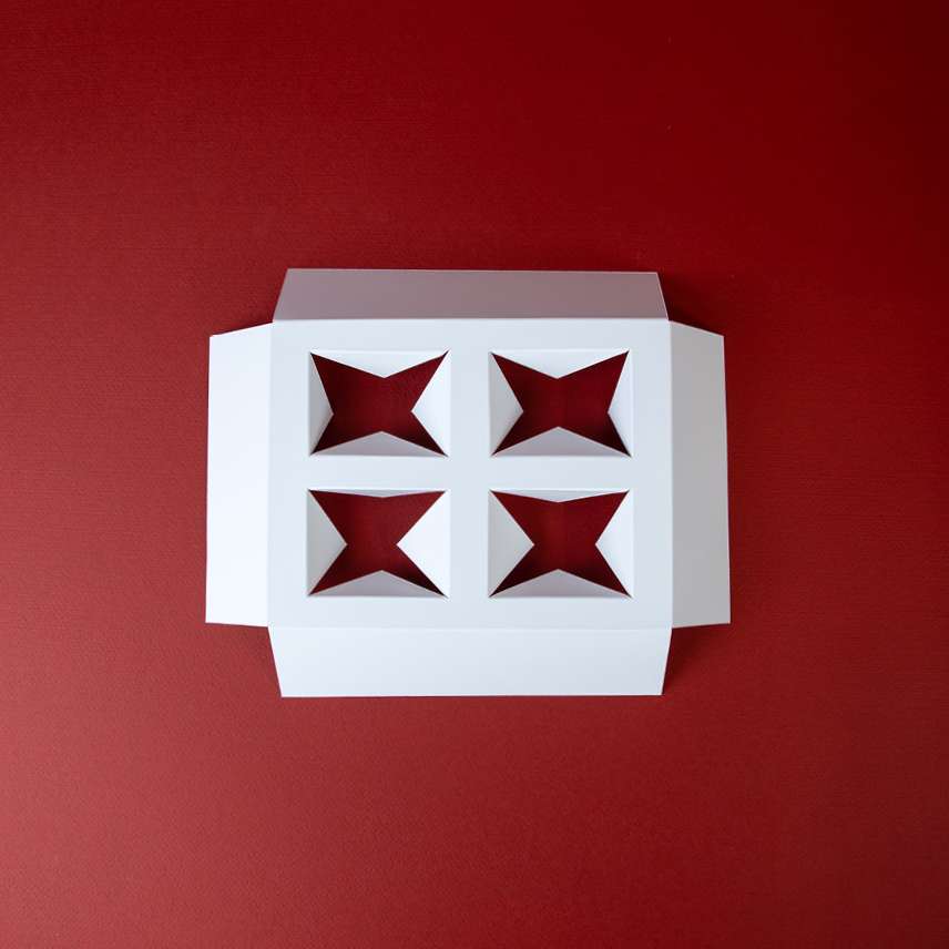 Una fustella precisa e pulita, presenta delle aperture ideali per alloggiare prodotti in modo stabile e visivamente accattivante. Seleziona quantità e tipo di sagomatura, inviaci la tua grafica o contatta il nostro team!